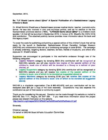 Lil’ Shadd’s Book Fundraising Campaign Letter for Website Revised September